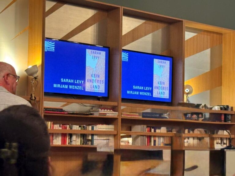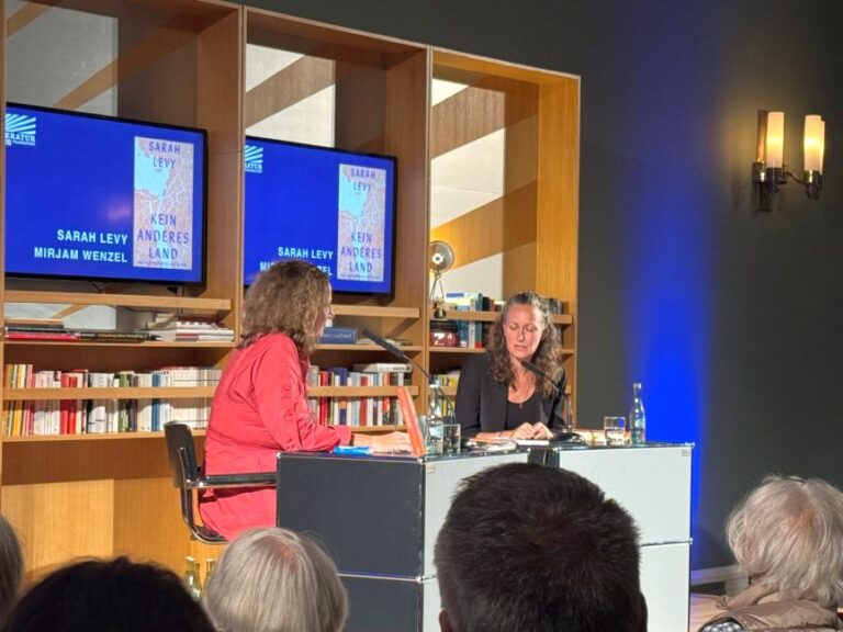 Sarah Levy gewährte an diesem Abend einen eindringlichen Einblick in ihr neues Buch „Kein anderes Land – Aufzeichnungen aus Israel“, das die Risse in einer Gesellschaft, aber auch in der Seele der Autorin offenlegt. Ihre Worte trugen den Druck, die Existenzangst, die inneren Zwiespalte – was ist richtig, was falsch, wer hat mehr Recht? – sichtbar in den Raum und öffneten Raum für Mitgefühl. Viele Zuhörende spürten die Gewalt und Verzweiflung hinter den Zeilen, aber zugleich auch den herzergreifenden Wunsch, mit ihrem Sohn in Frieden und Freude mit Menschen aller Herkunft – ob Jüdin oder Araber – leben zu dürfen, ohne die ständige Furcht von Heimat zu Heimat weiterziehen zu müssen.
